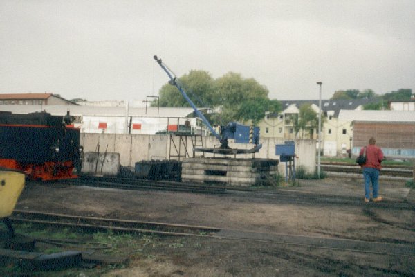 Der Bekohlungskran mit den Kohlebansen wartet auf den nächsten Einsatz.
